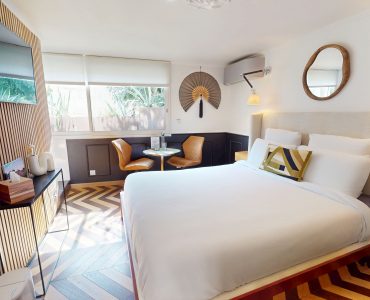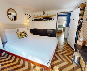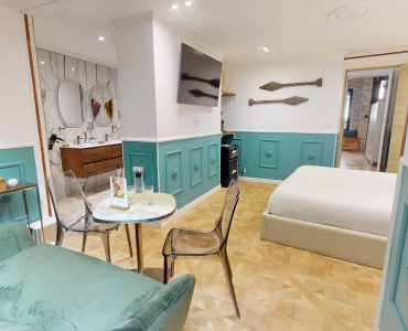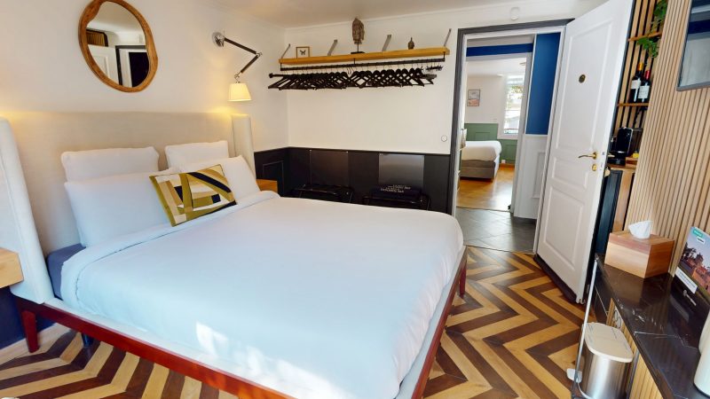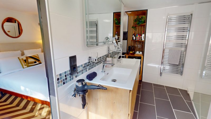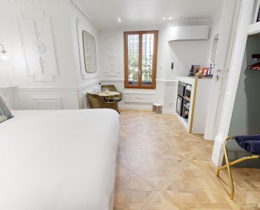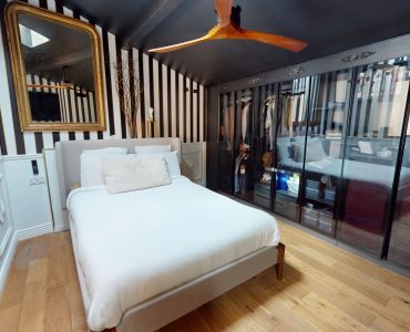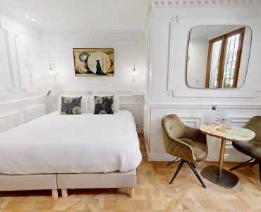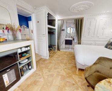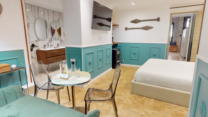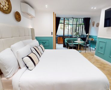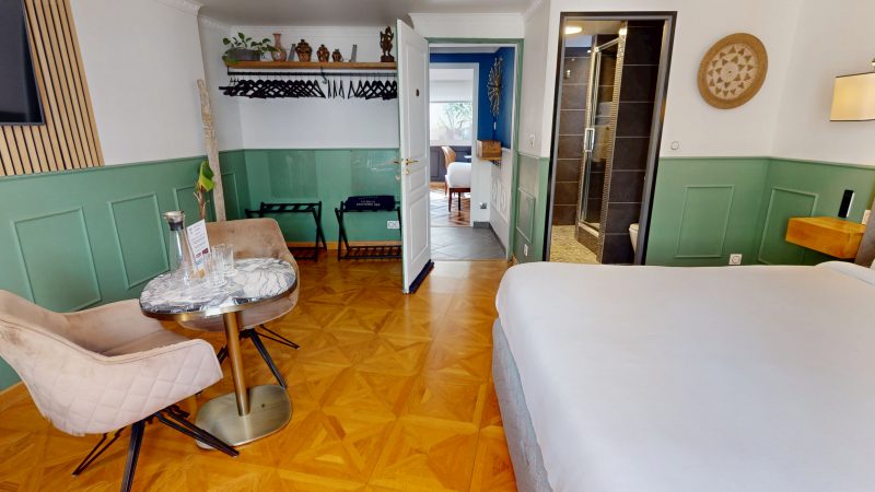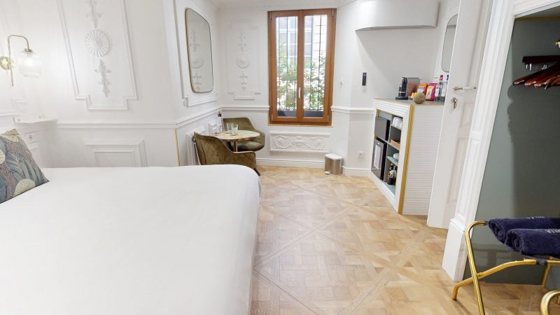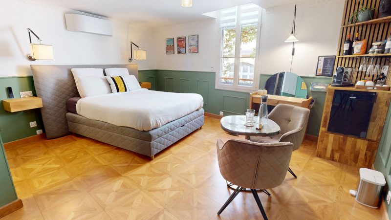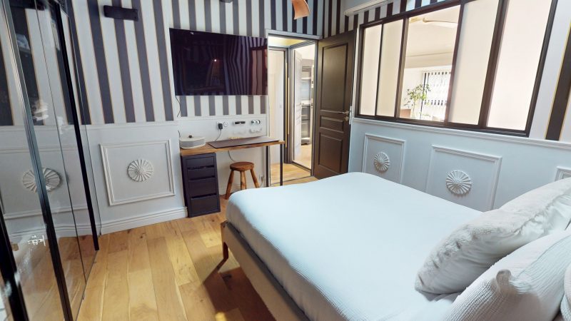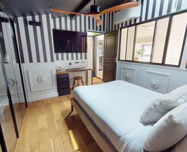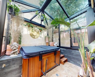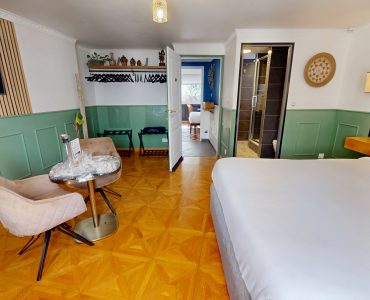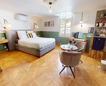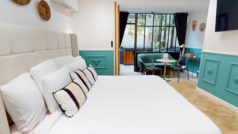 L’une des chambres bénéficie d’un atout rare en centre-ville : une cour couverte privative avec jacuzzi, véritable havre de détente.
