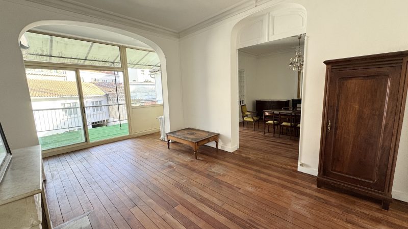 La double pièce de vie d’environ 43m2, séduit par son cachet : parquet d’origine, moulures, et cheminée apparente. Cet espace bénéficie d’une belle luminosité et d’un accès à une terrasse de 21m2, exposée sud-est.