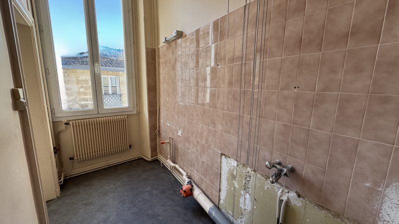 BORDEAUX – PALAIS GALLIEN : Situé au premier étage d’un immeuble en pierre, cet appartement traversant occupe l’intégralité du plateau, pour une surface de 136 m2 carrez.