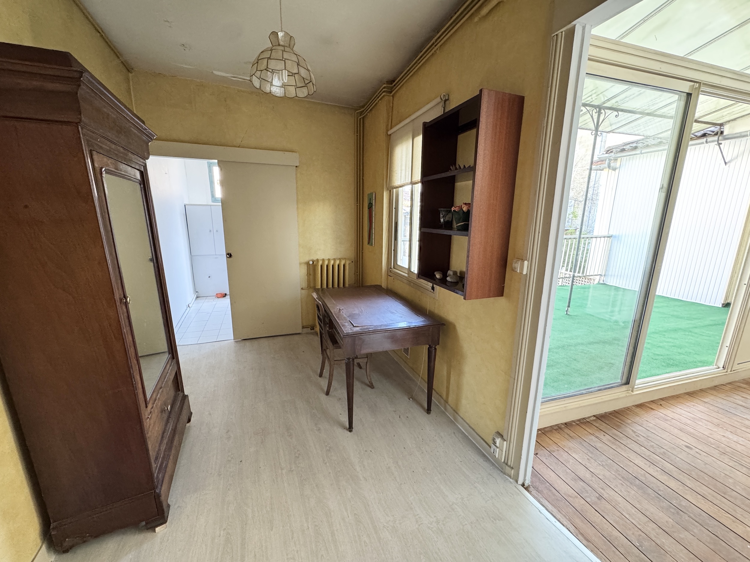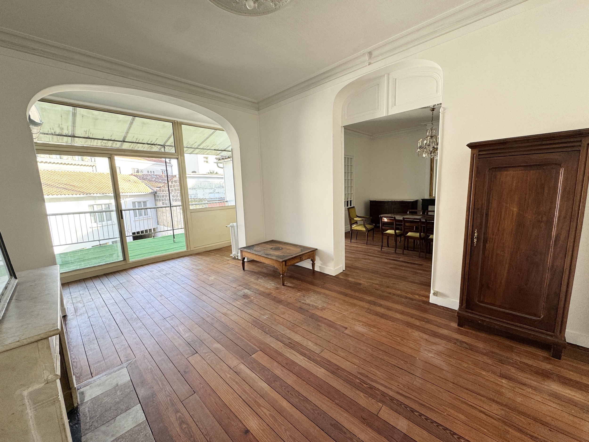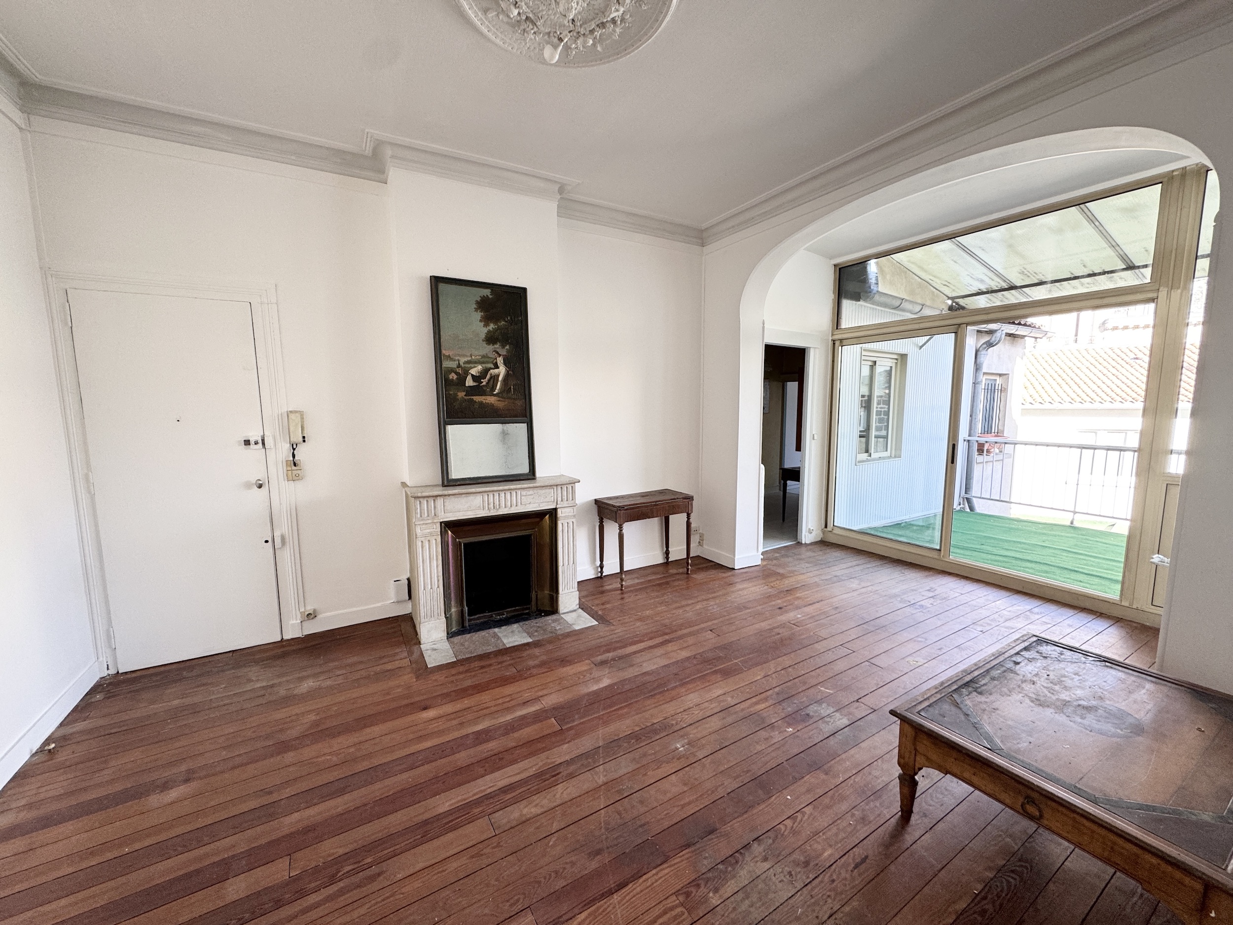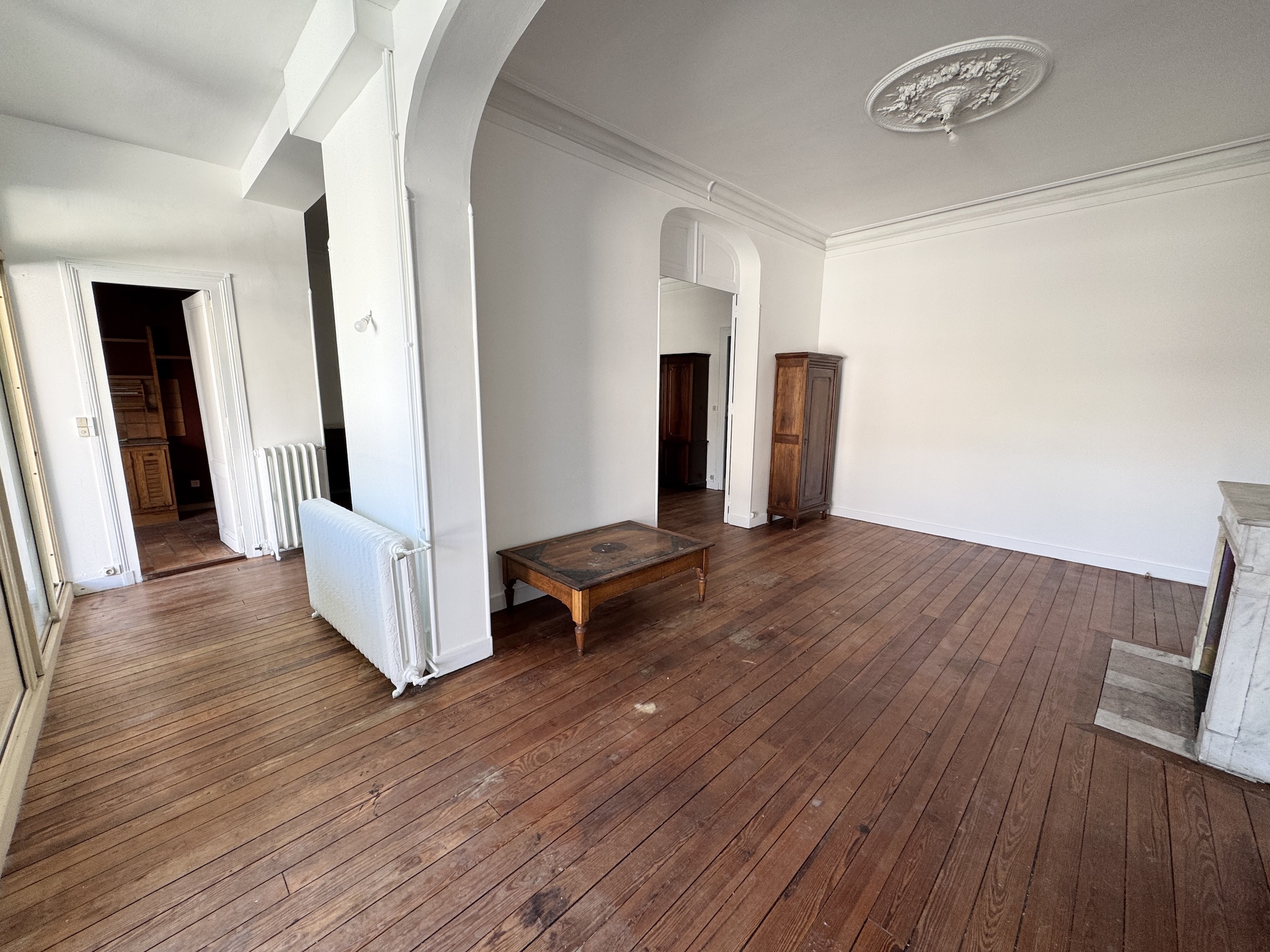 La double pièce de vie d’environ 43m2, séduit par son cachet : parquet d’origine, moulures, et cheminée apparente. Cet espace bénéficie d’une belle luminosité et d’un accès à une terrasse de 21m2, exposée sud-est.