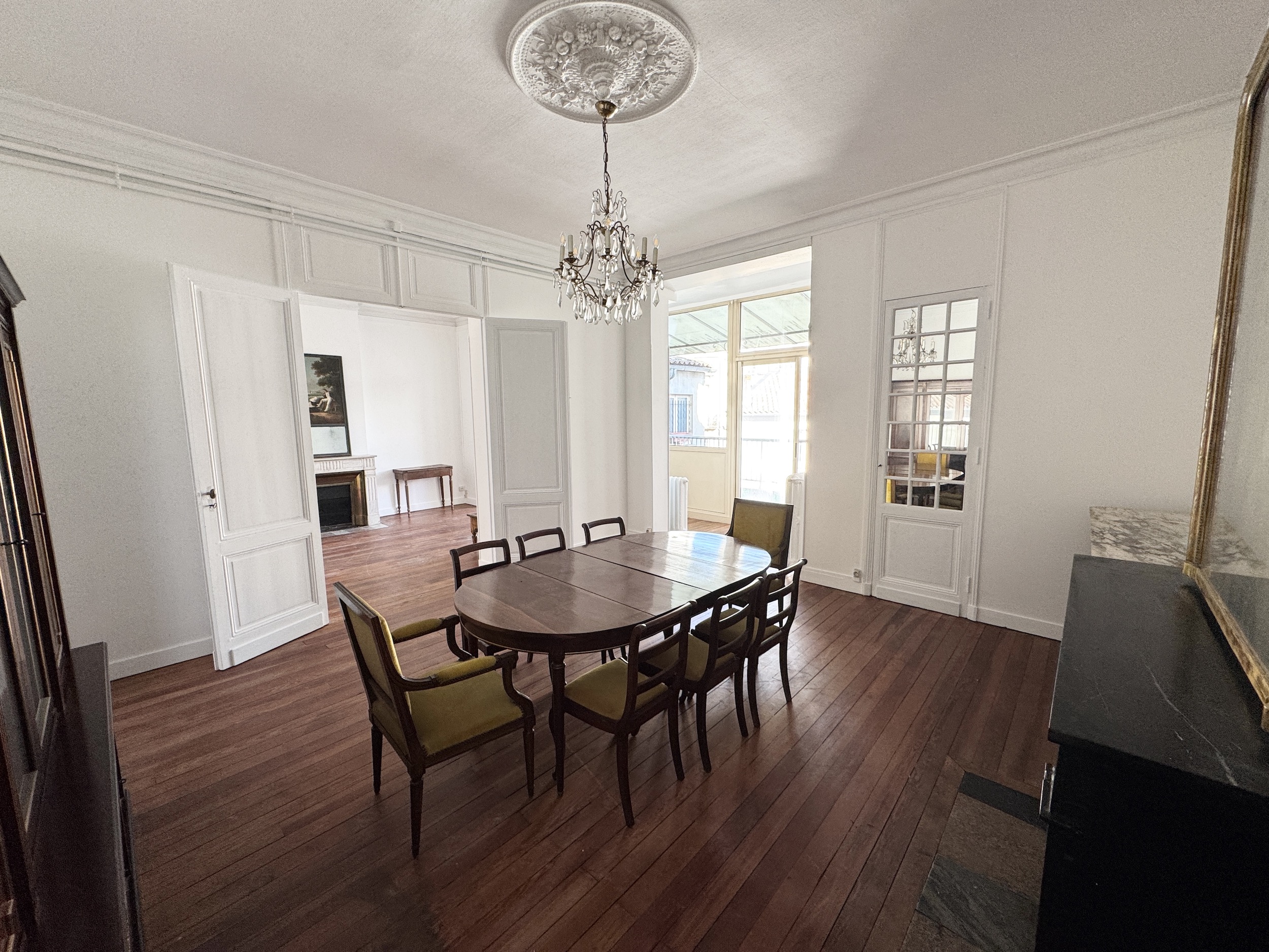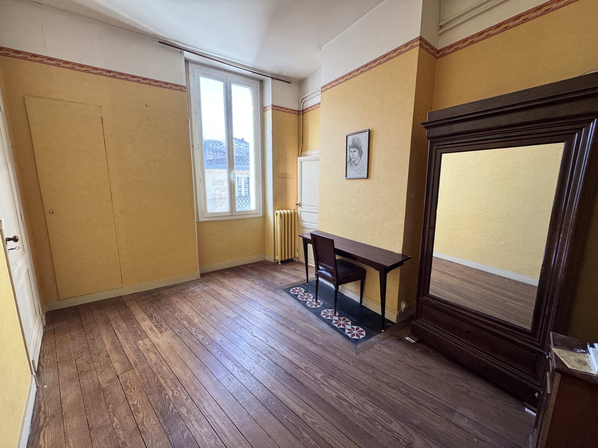 BORDEAUX – PALAIS GALLIEN : Situé au premier étage d’un immeuble en pierre, cet appartement traversant occupe l’intégralité du plateau, pour une surface de 136 m2 carrez.